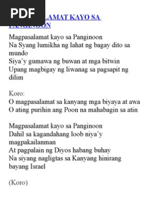 Magpasalamat Kayo Sa Panginoon Lyrics Pdf